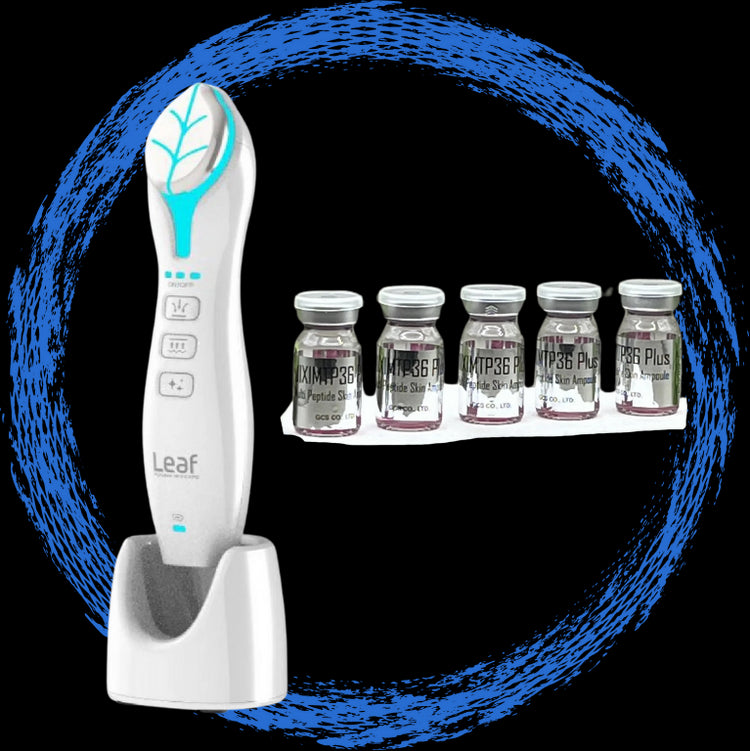 Indulge in the Leaf Fusion Plasma tool alongside our latest multi peptide serum. Experience the height of luxury with the Leaf Fusion Plasma tool and enhance your skincare routine with our powerful multi peptide serum. With this dynamic duo, you'll see real results and achieve the perfect balance of beauty and innovation.